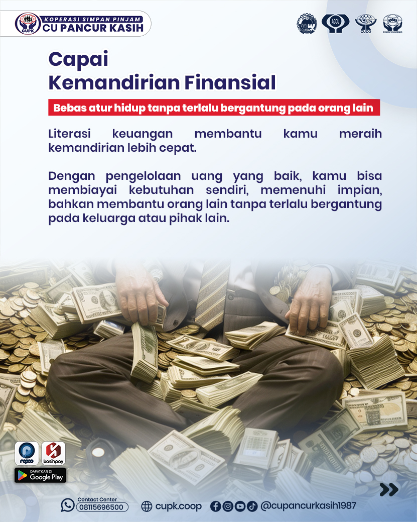 Literasi keuangan membantu kita meraih kemandirian lebih cepat. Dengan pengelolaan uang yang baik, kita bisa membiayai kebutuhan sendiri, memenuhi impian, bahkan membantu orang lain tanpa terlalu bergantung pada keluarga atau pihak lain. |