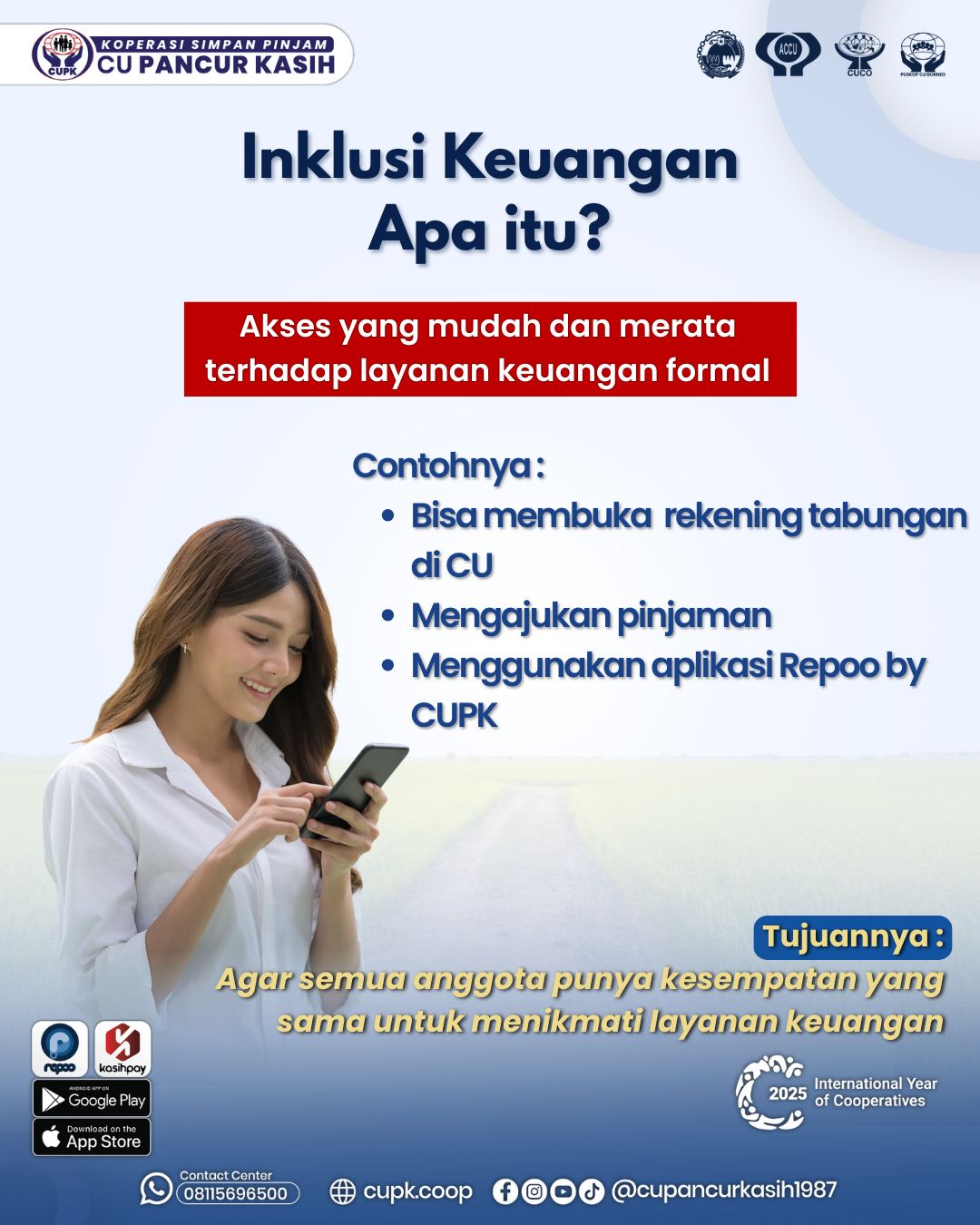 Artinya, setiap orang memiliki kesempatan yang sama untuk menggunakan produk dan layanan keuangan formal — seperti memiliki rekening tabungan, mengajukan pinjaman, atau menggunakan aplikasi keuangan digital seperti Repoo by CUPK.