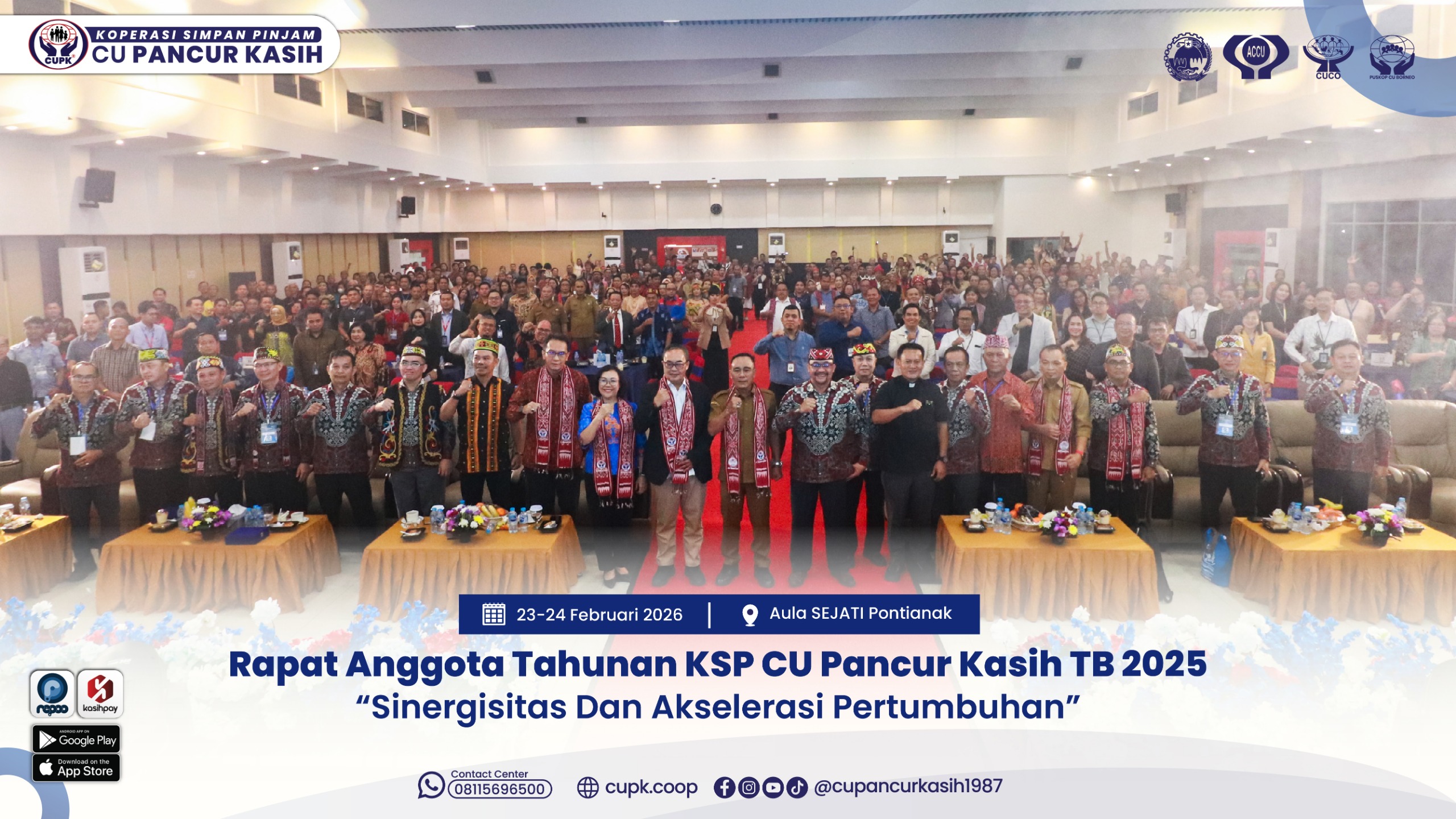 Pontianak – Koperasi Simpan Pinjam Credit Union (KSP CU) Pancur Kasih menyelenggarakan Rapat Anggota Tahunan (RAT) Tahun Buku 2025 pada 23–24 Februari 2026 bertempat di Aula Sejati CU Pancur Kasih, Pontianak. RAT ini merupakan forum tertinggi koperasi yang dihadiri oleh pengurus, pengawas, manajemen, serta perwakilan anggota dari seluruh wilayah pelayanan CU Pancur Kasih di Kalimantan Barat.