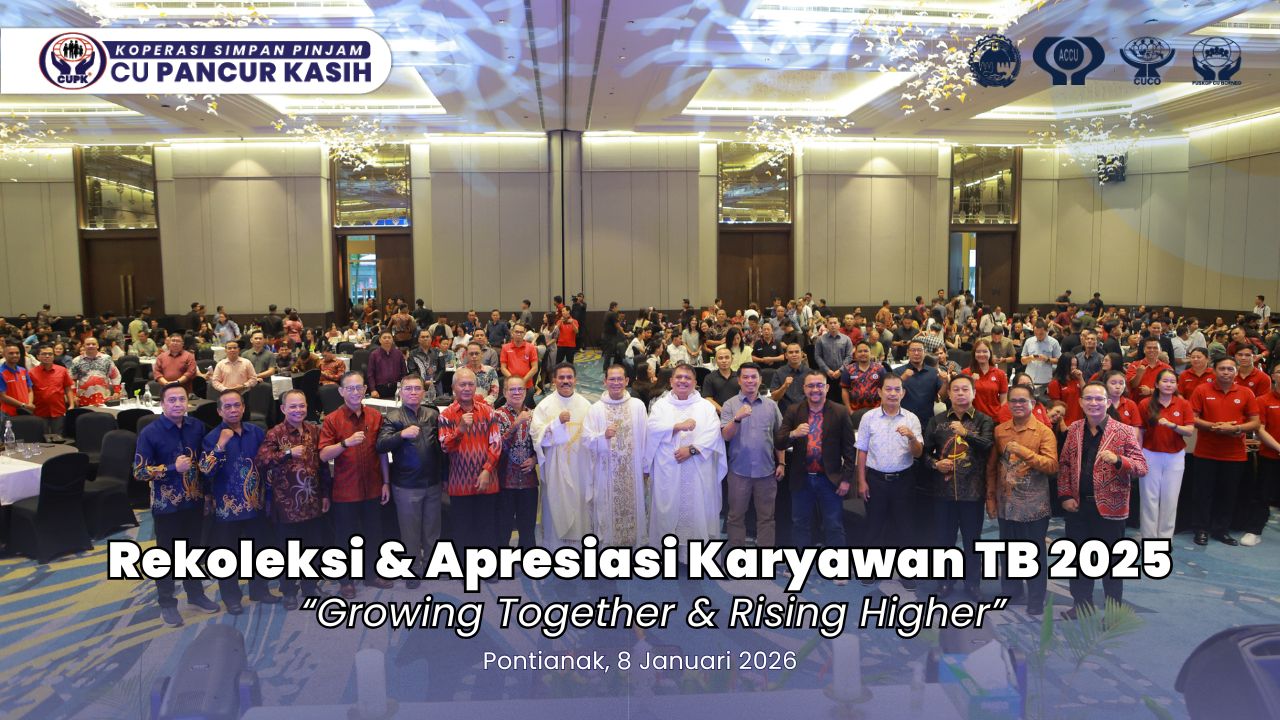 Melalui Rekoleksi dan Apresiasi Karyawan Tahun Buku 2025 ini, diharapkan seluruh karyawan semakin diteguhkan dalam iman, diperkaya dalam semangat kebersamaan, dan termotivasi untuk terus memberikan pelayanan terbaik. Dengan semangat “Growing Together & Rising Higher”, KSP CU Pancur Kasih berkomitmen untuk terus melangkah maju sebagai lembaga yang solid, profesional, dan berlandaskan nilai-nilai kebersamaan serta pelayanan kepada sesama.